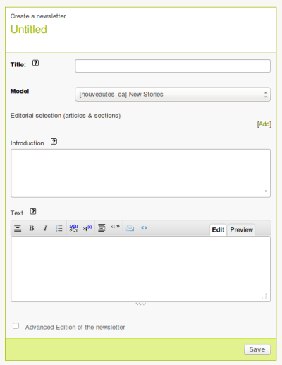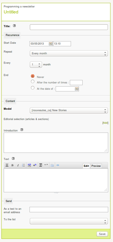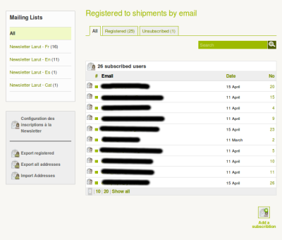 This feature allows you to manage one or more Newsletters (with import and export of mailing lists) to send to your contacts.